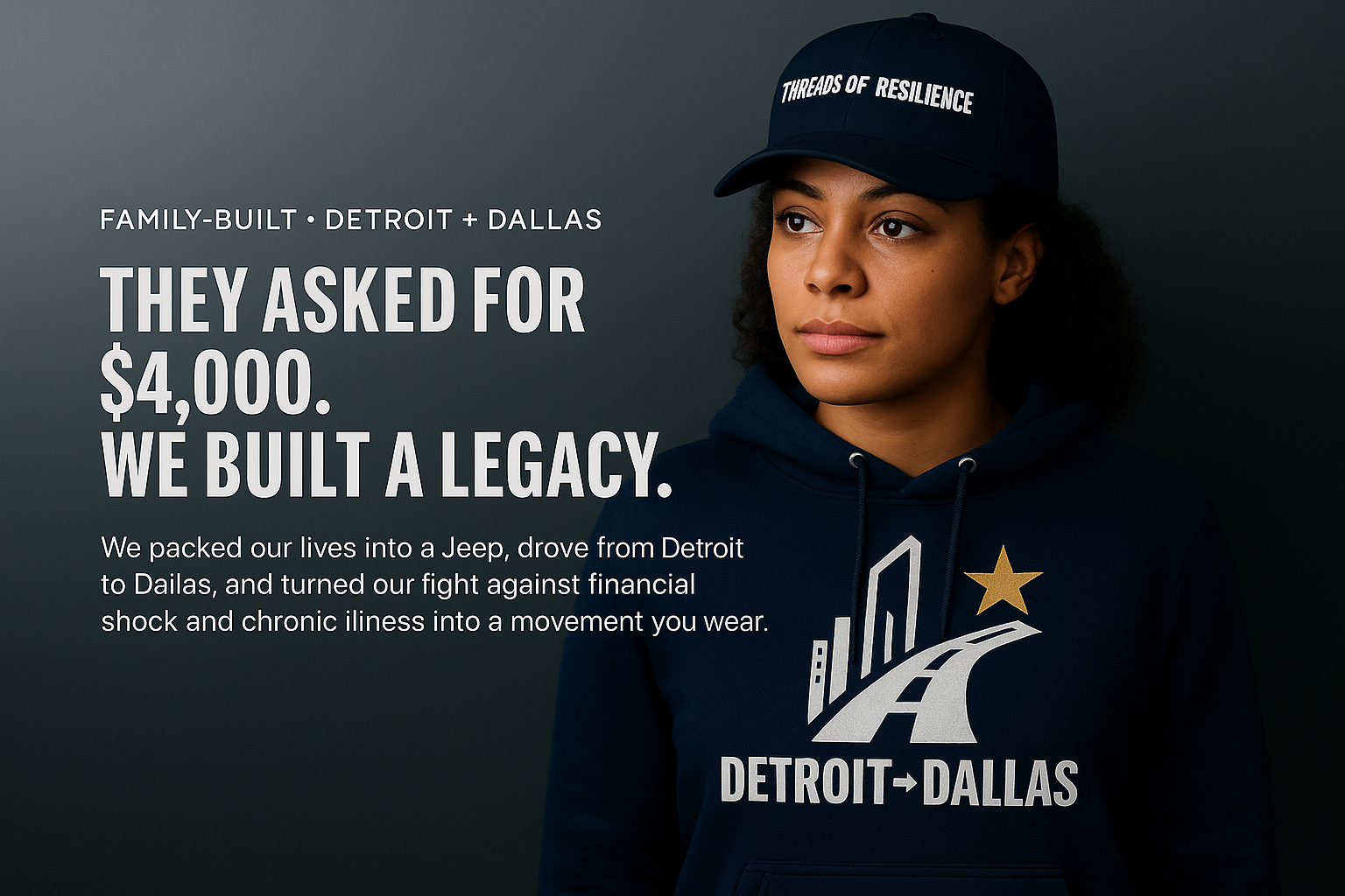 We packed our lives into a Jeep, drove from Detroit to Dallas, and turned our fight through chronic illness, fear, and financial shock into Mari’Anna Tees — a family-built brand that lets you wear your story of survival with pride.